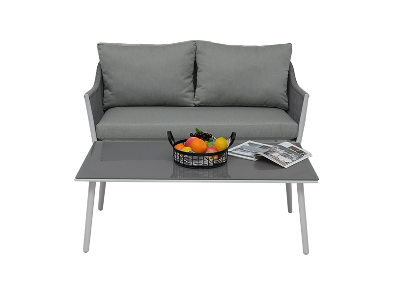 Sonraíocht | fráma alúmanaim le rópa fite, 4pcs san iomlán; Loveseat: L75*W135*H76CM, 1PC Cathaoir Aonair: L75*W75*H76CM, 2PCS Tábla Caife: L114*W60*H38.5cm, Gloine Liath 5mm, 1pc |